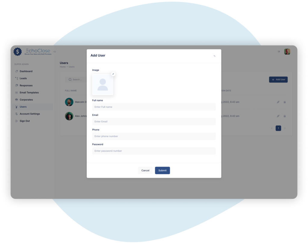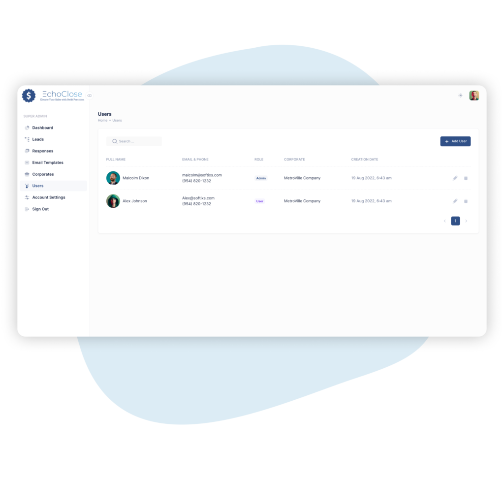 Oversee users and leads with teams within your company. Execute blast marketing campaigns and add new users effortlessly.